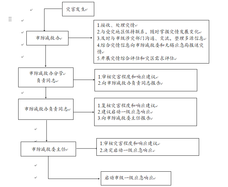啟動市級一級應(yīng)急響應(yīng)按照以下流程進行: