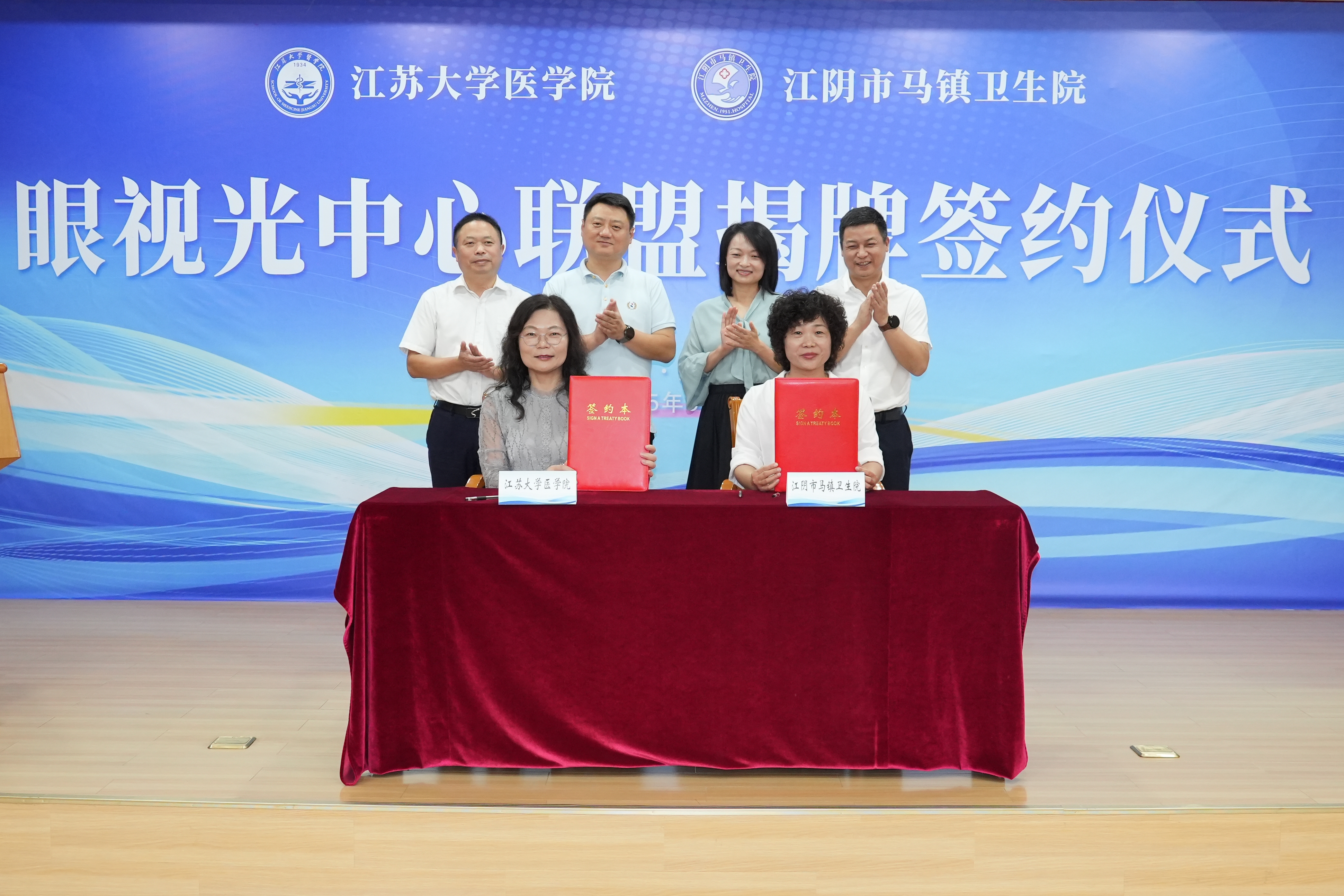 ▲江蘇大學(xué)醫(yī)學(xué)院黨委副書記、副院長莊蕾與江陰市馬鎮(zhèn)衛(wèi)生院黨支部書記、院長閆慧敏共同簽署眼視光中心聯(lián)盟合作協(xié)議。