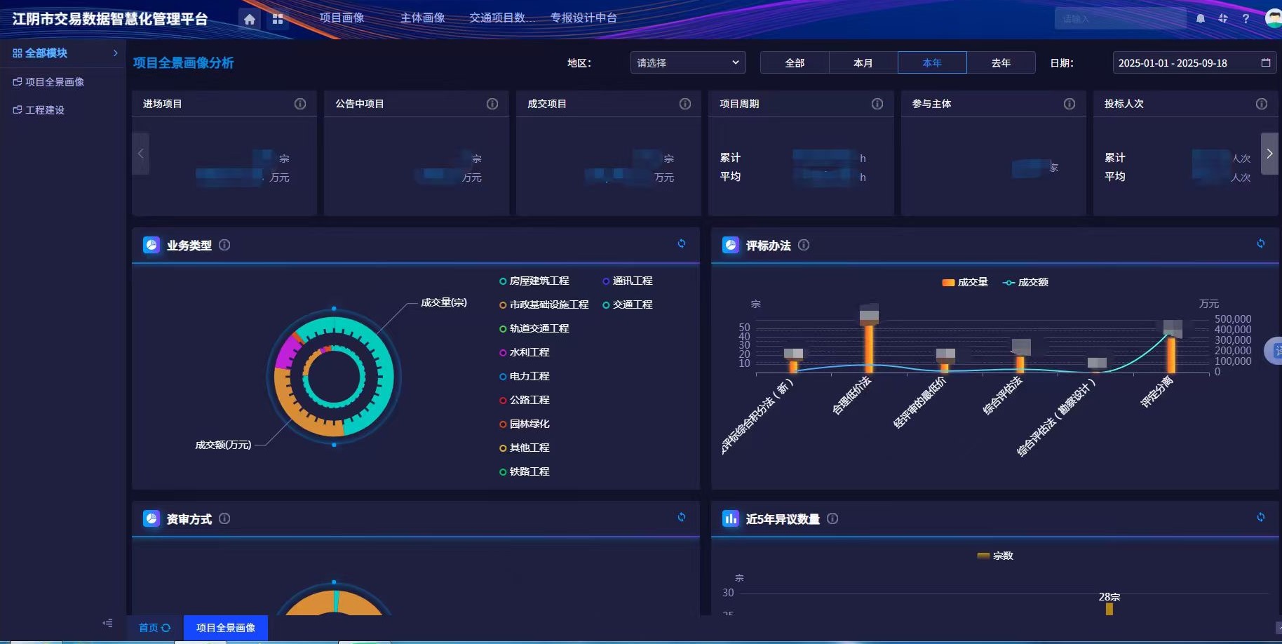 在技術(shù)落地層面,中心重點突破核心數(shù)據(jù)模型設(shè)計、可視化展示框架搭建及基礎(chǔ)功能模塊開發(fā)三大關(guān)鍵環(huán)節(jié),目前平臺建設(shè)已取得階段性成果。其中,全景畫像功能已正式建成,可整合全市工程建設(shè)領(lǐng)域交易數(shù)據(jù),通過動態(tài)圖表、趨勢曲線等可視化形式,直觀呈現(xiàn)交易市場運行態(tài)勢、行業(yè)分布特征及不同時間維度的項目交易差異,讓“數(shù)據(jù)”變“視圖”,實現(xiàn)交易情況“一屏盡覽”;自動生成分析報告功能同步上線,可根據(jù)預設(shè)維度或自定義需求,自動抓取數(shù)據(jù)、分析規(guī)律、生成報告,大幅縮短數(shù)據(jù)匯總分析周期,為監(jiān)管部門制定政策、市場主體研判趨勢提供高效數(shù)據(jù)支持,有效解決傳統(tǒng)人工分析耗時久、效率低、精準度不足等問題。